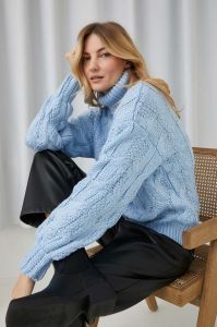 Светр з вовною Answear Lab жіночий теплий гольф колір блакитний