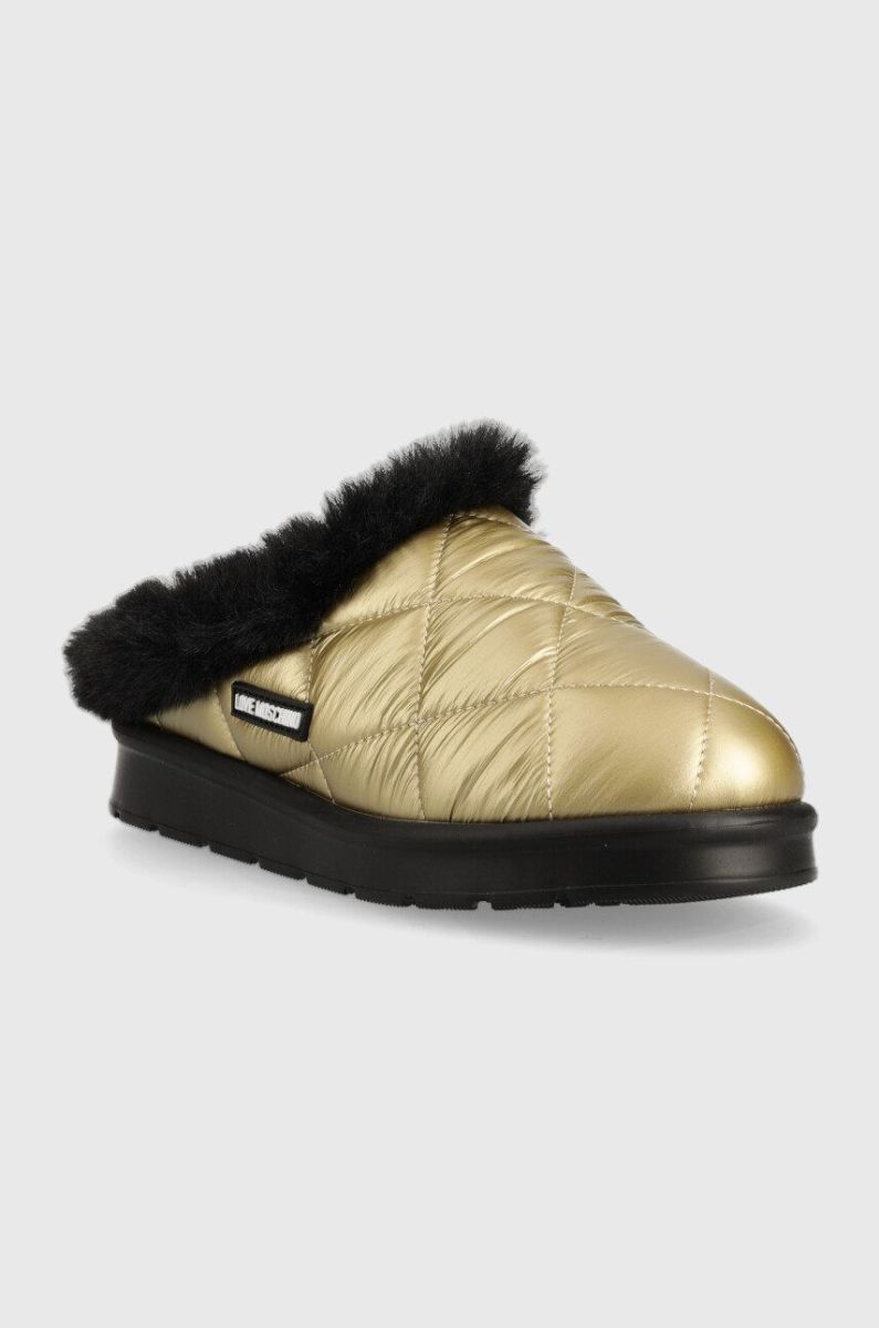 Тапочки із колекції Love Moschino. Модель виготовена із текстильного матеріалу.