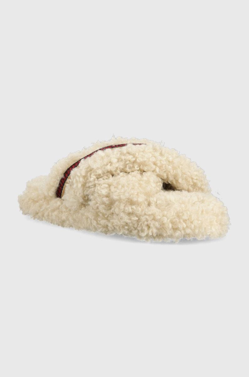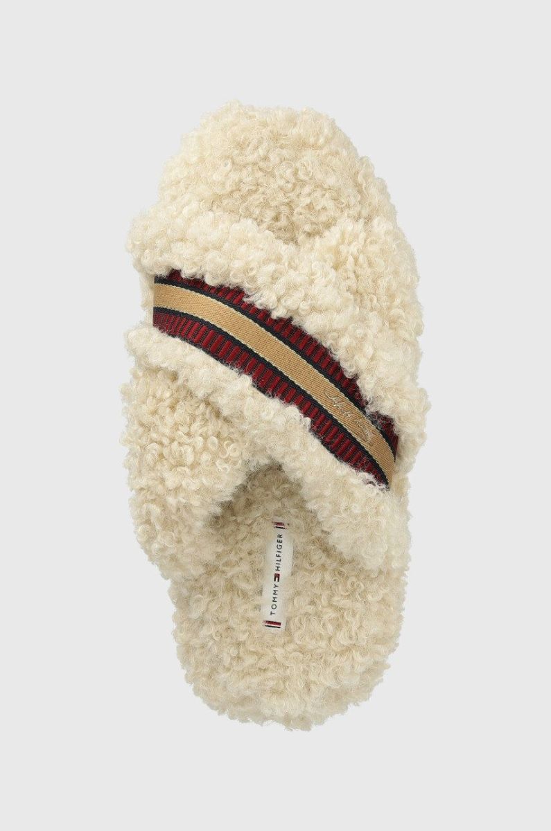 Тапочки Tommy Hilfiger Sherpa Fur Home Slippers Straps колір бежевий