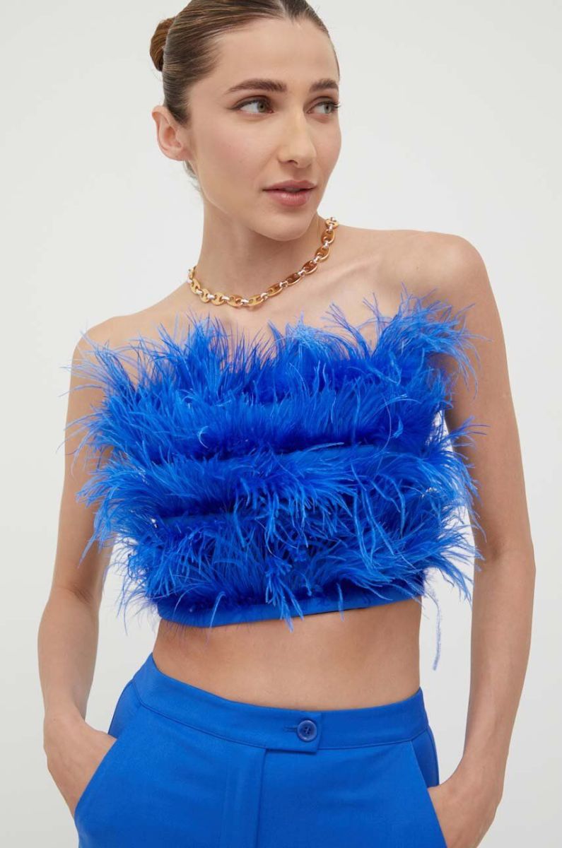 Топ Patrizia Pepe жіночий оголене плече колір блакитний