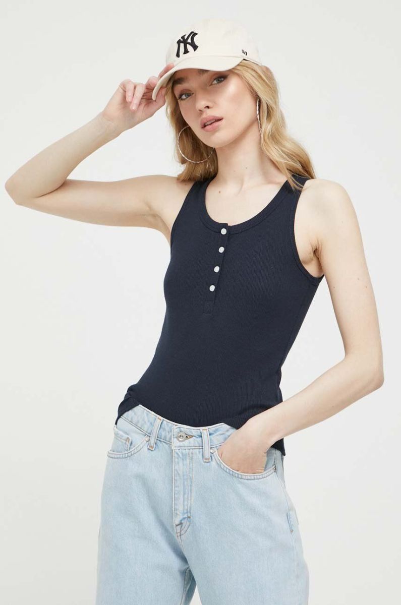 Приталений топ з колекції Superdry виконана з ребристого трикотажу. Модель із надзвичайно комфортного матеріалу з високим вмістом бавовни.