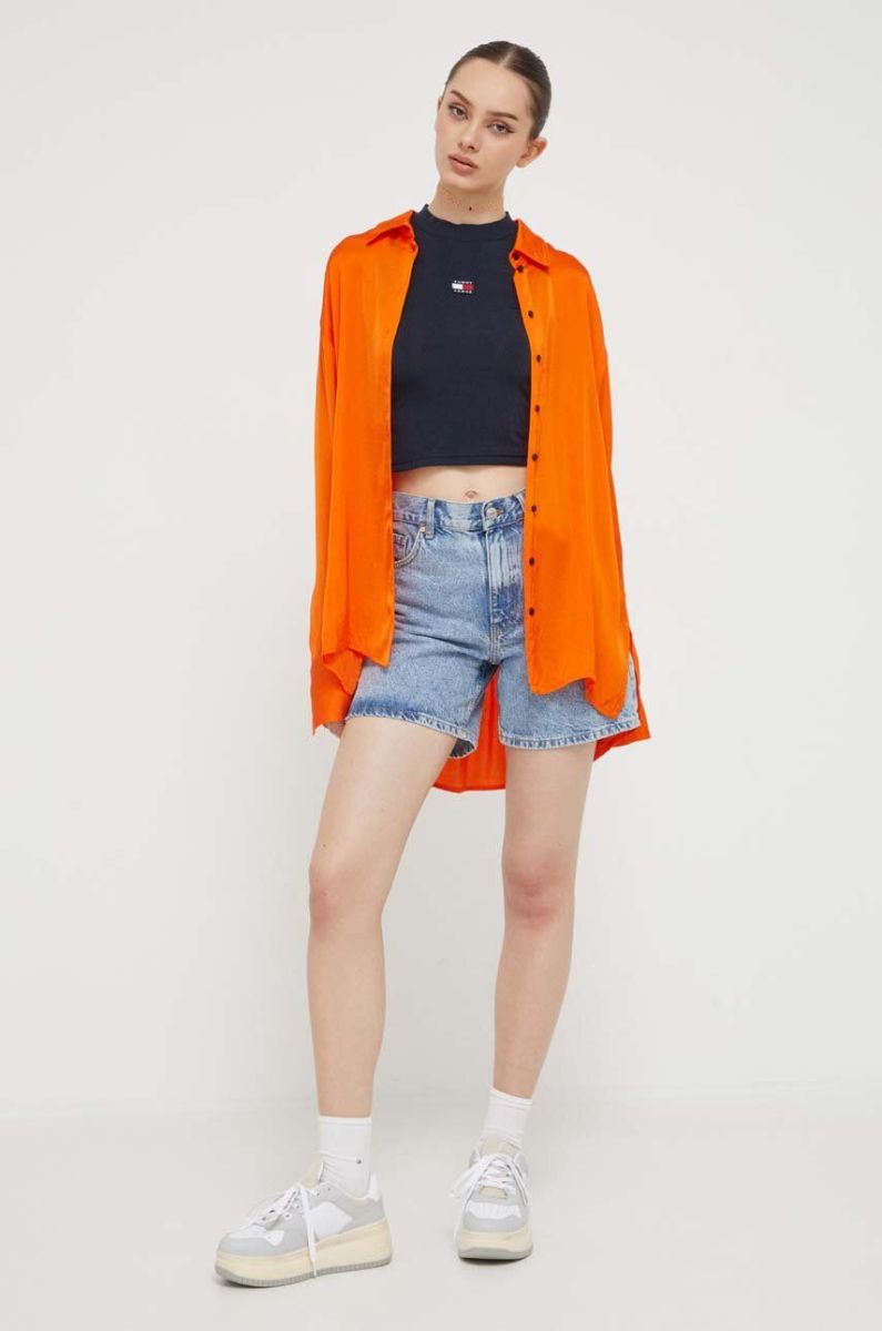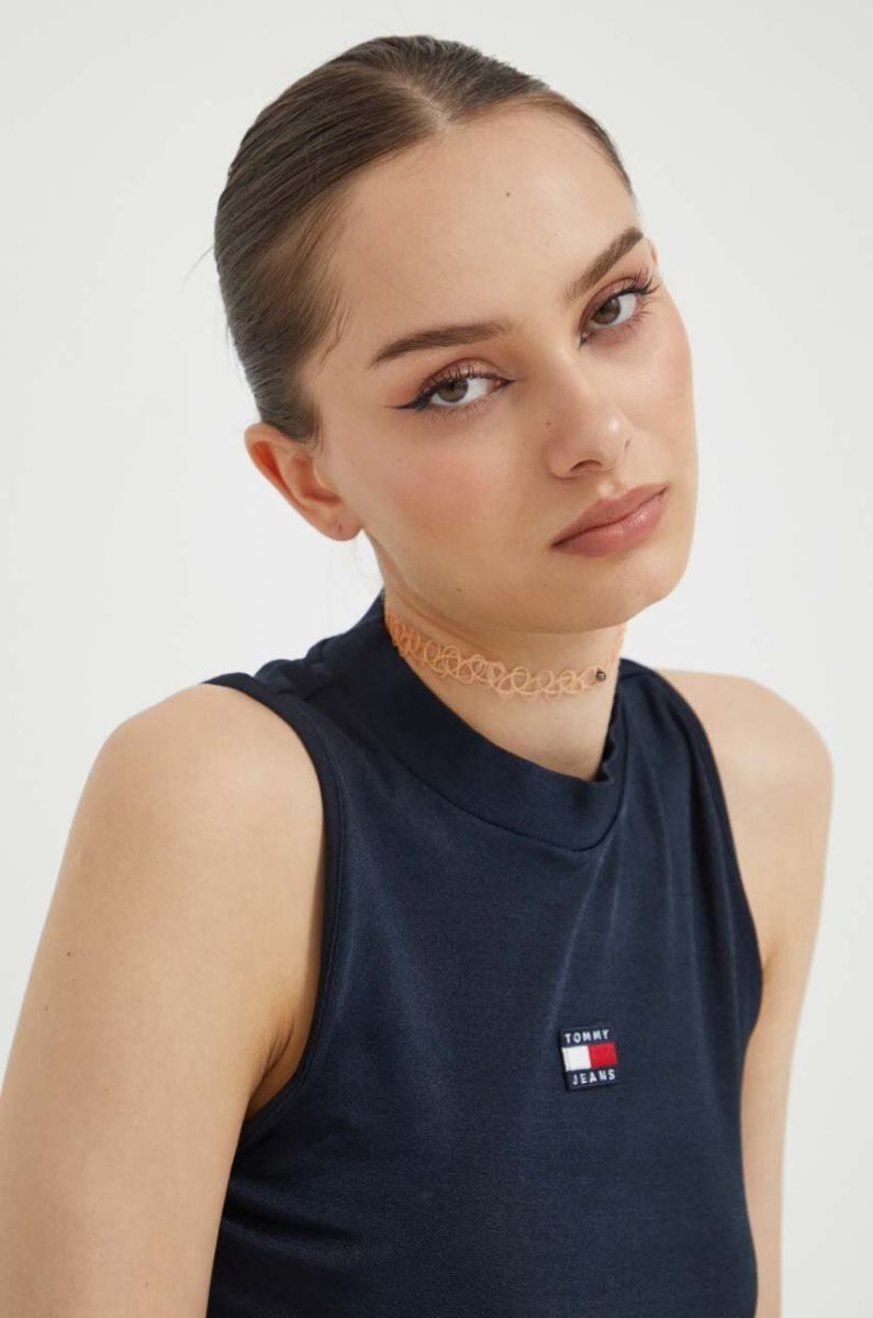 Топ Tommy Jeans жіночий колір синій півгольф