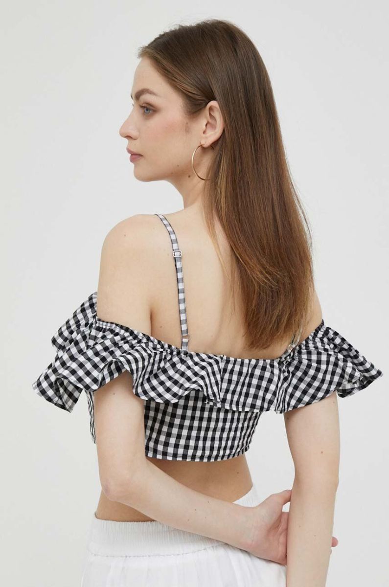 Топ з домішкою льону United Colors of Benetton колір чорний візерунок