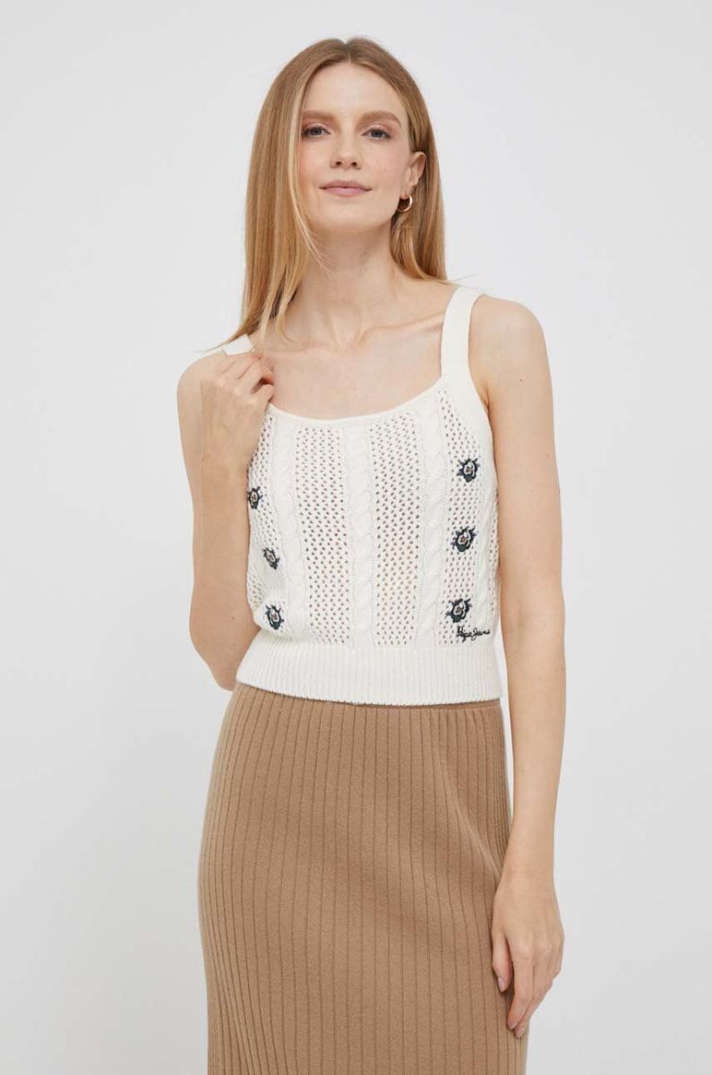 Топ з домішкою вовни Pepe Jeans Emalynn колір бежевий