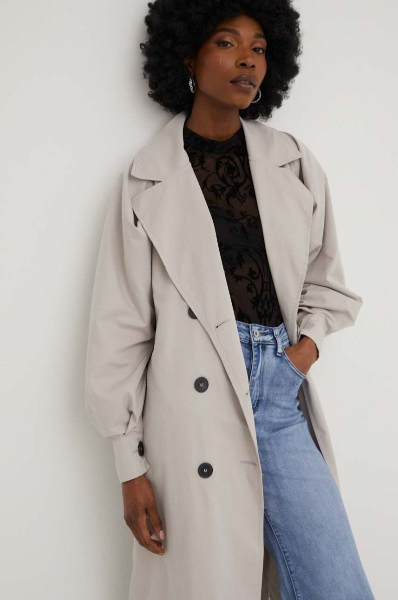 Тренч Answear Lab жіночий колір сірий перехідний двобортний