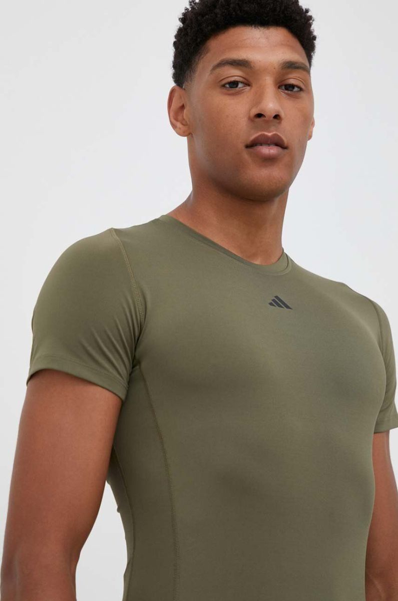 Тренувальна футболка adidas Performance Techfit колір зелений однотонна