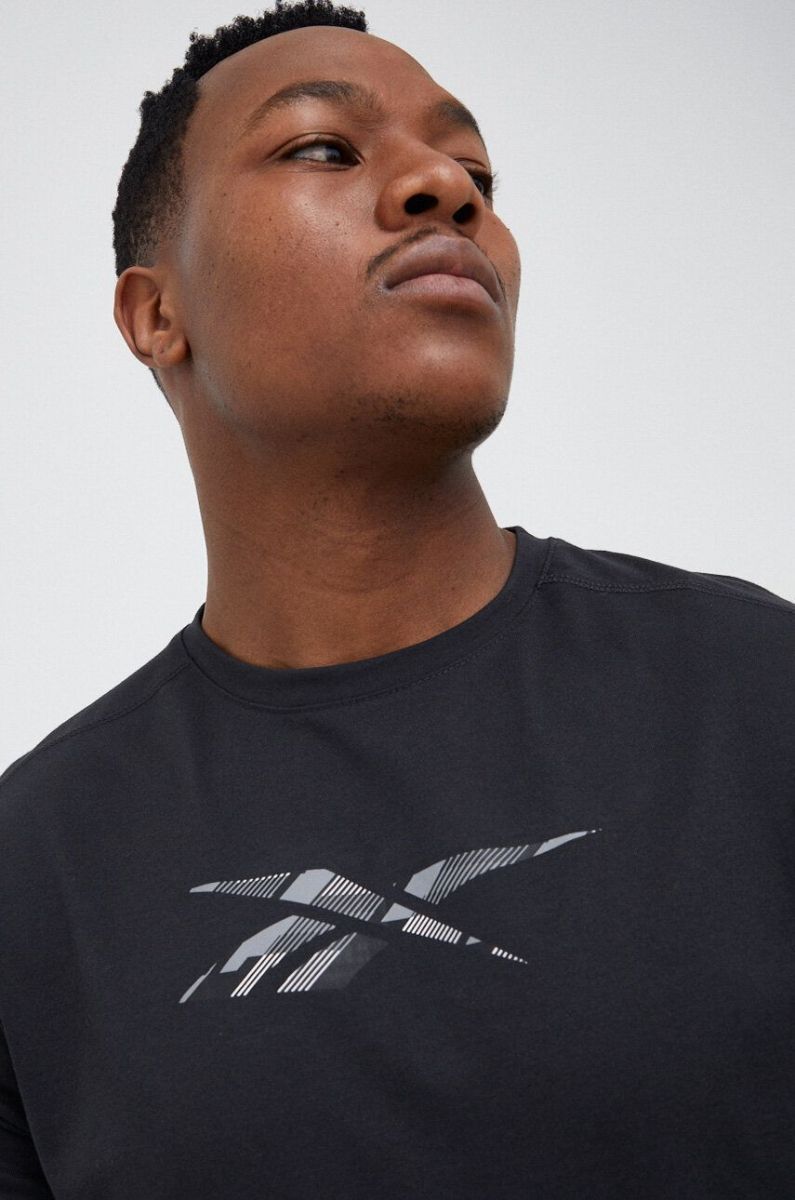 Тренувальна футболка Reebok колір чорний з принтом (3047362)