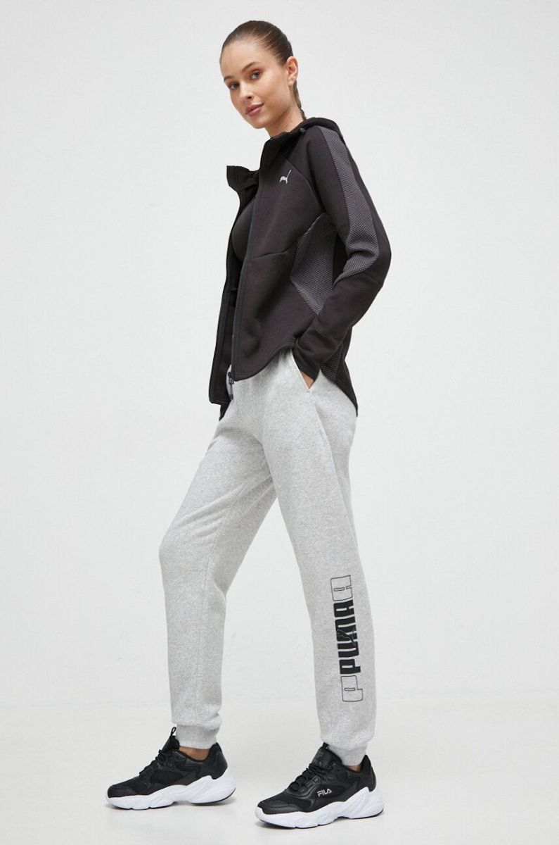 Тренувальна кофта Puma колір чорний з капюшоном візерунок