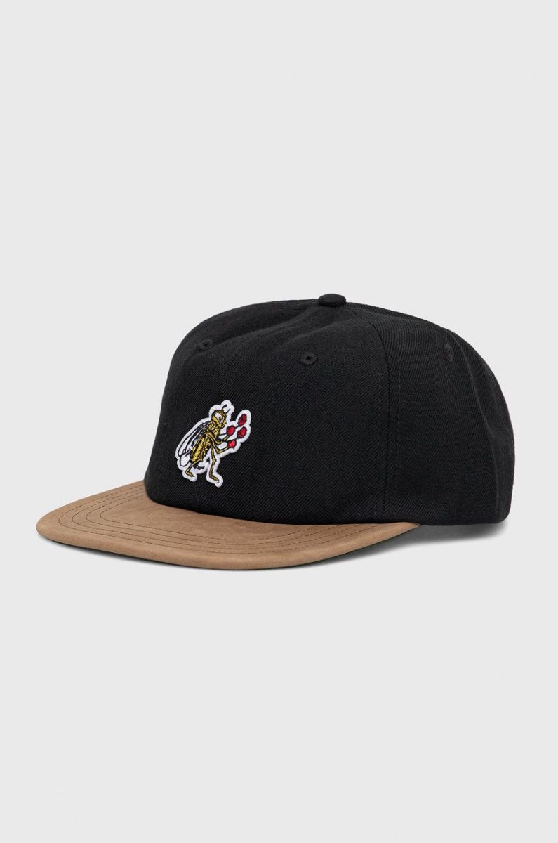 Кепка фасону snapback із колекції Vans. Модель виготовлена із тканини із аплікацією.