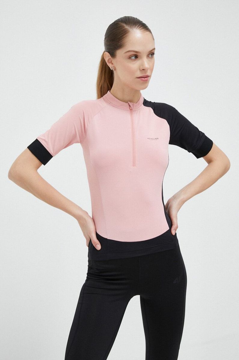 Велосипедна футболка 4F колір рожевий півгольф