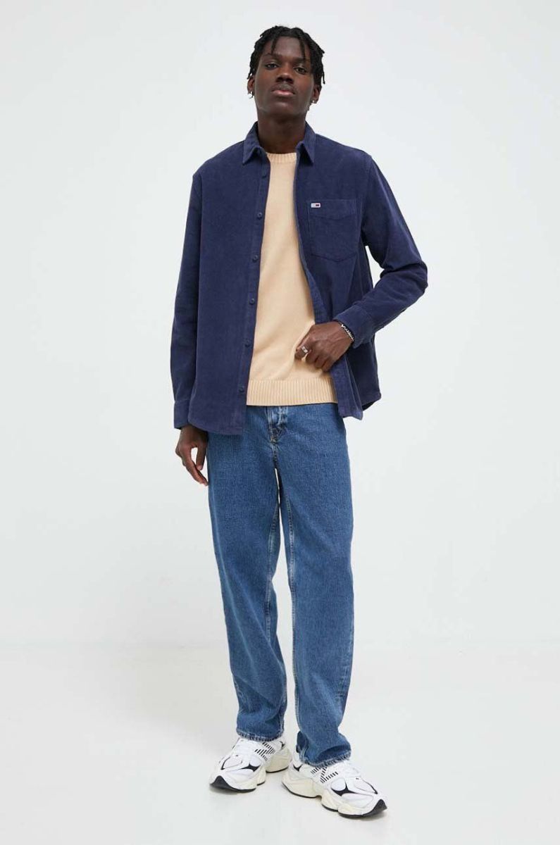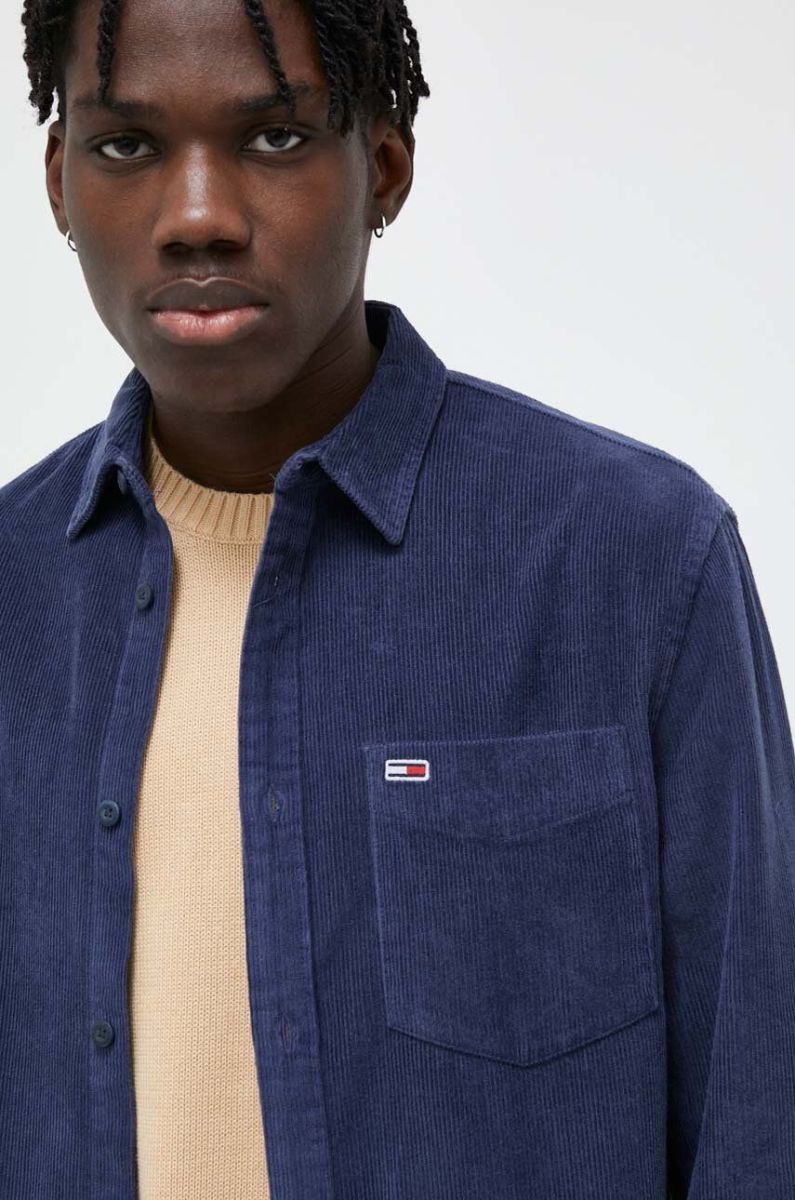 Вельветова сорочка Tommy Jeans колір синій regular класичний комір