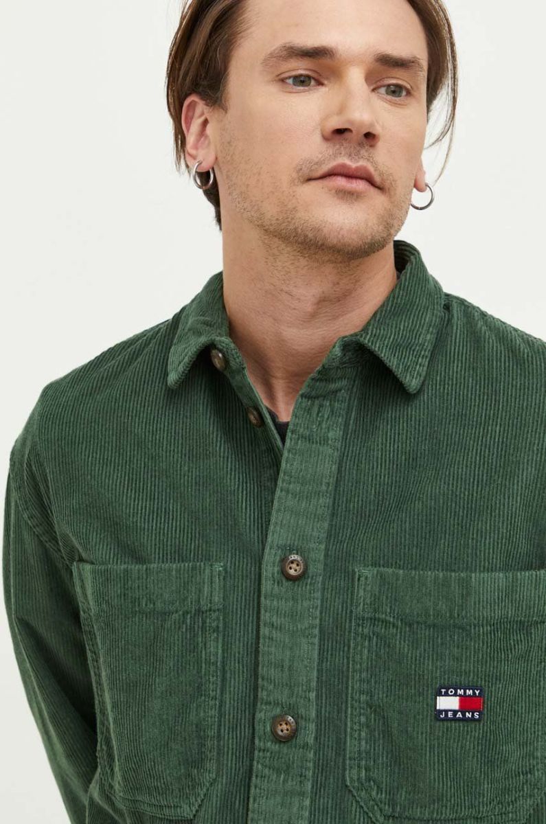 Вельветова сорочка Tommy Jeans колір зелений relaxed класичний комір (3324908)
