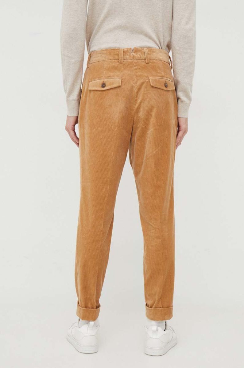 Вельветові штани BOSS колір бежевий пряме