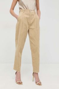 Вельветові штани Custommade Priva жіночі колір бежевий прямі висока посадка
