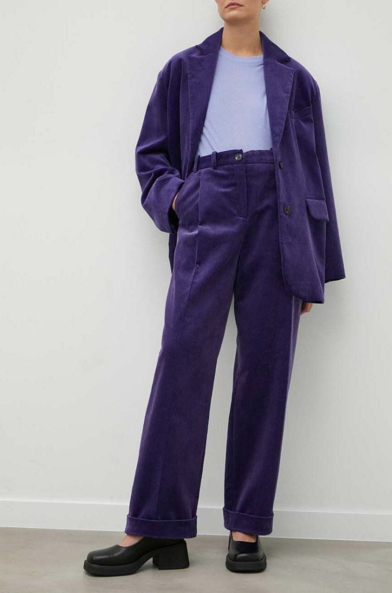 Вельветові штани Lovechild Lucas колір фіолетовий прямі висока посадка