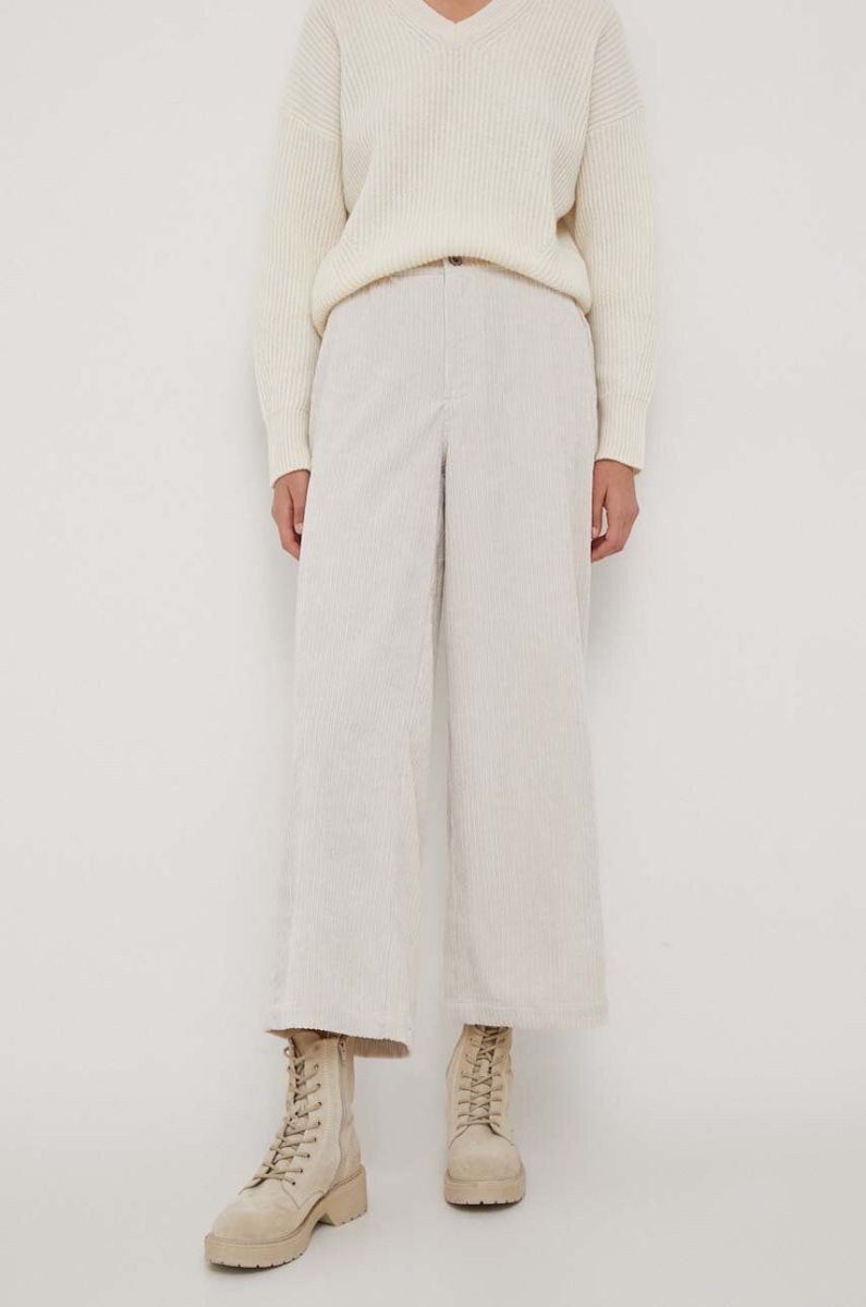 Вельветові штани Pepe Jeans Rihanna колір бежевий широкі висока посадка