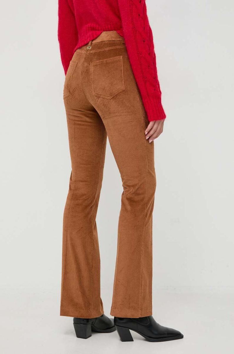 Вельветові штани Twinset колір коричневий облягаюче висока посадка