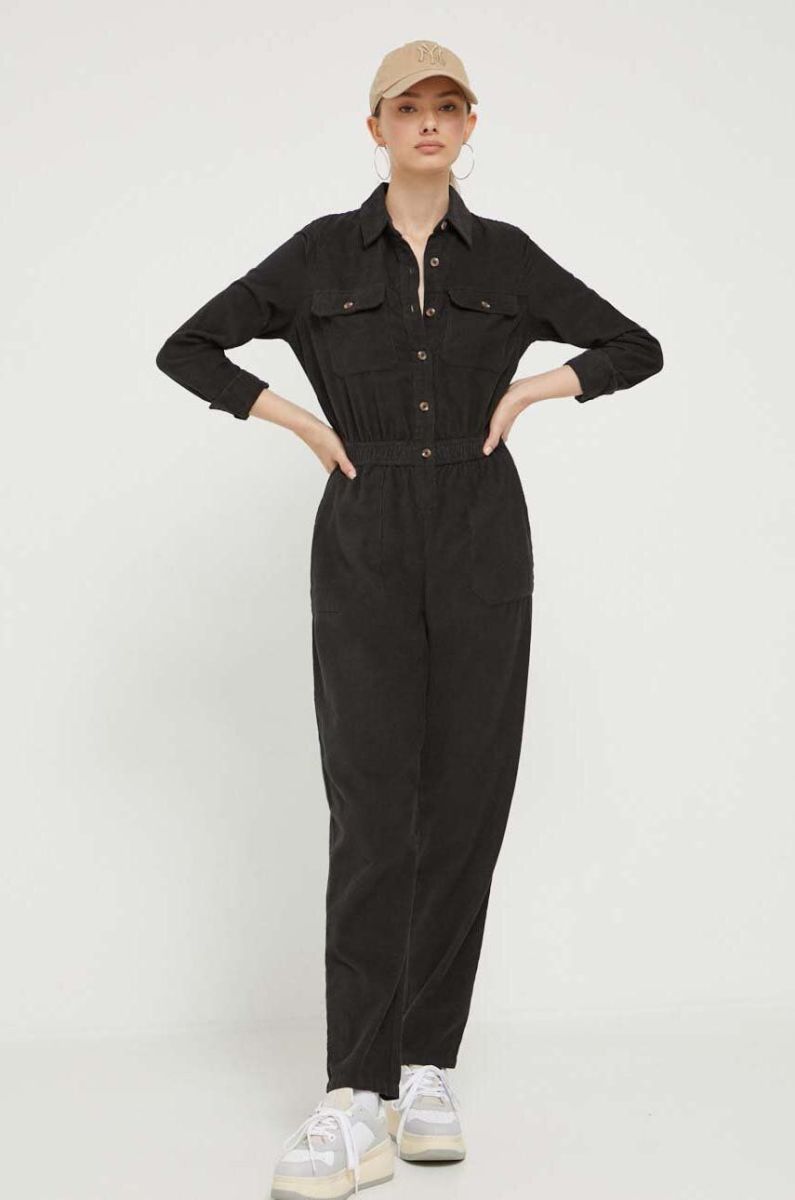 Вельветовий комбінезон Roxy колір чорний з коміром