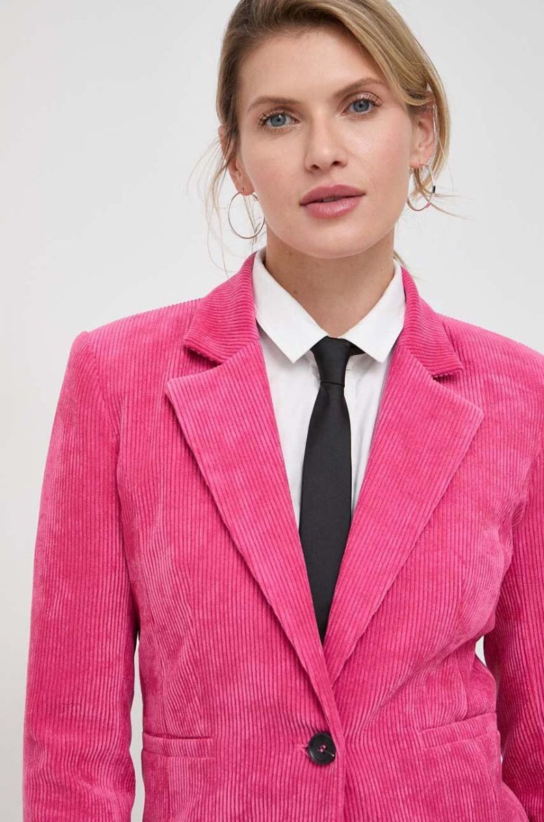Вельветовий піджак Patrizia Pepe колір рожевий однобортний однотонна