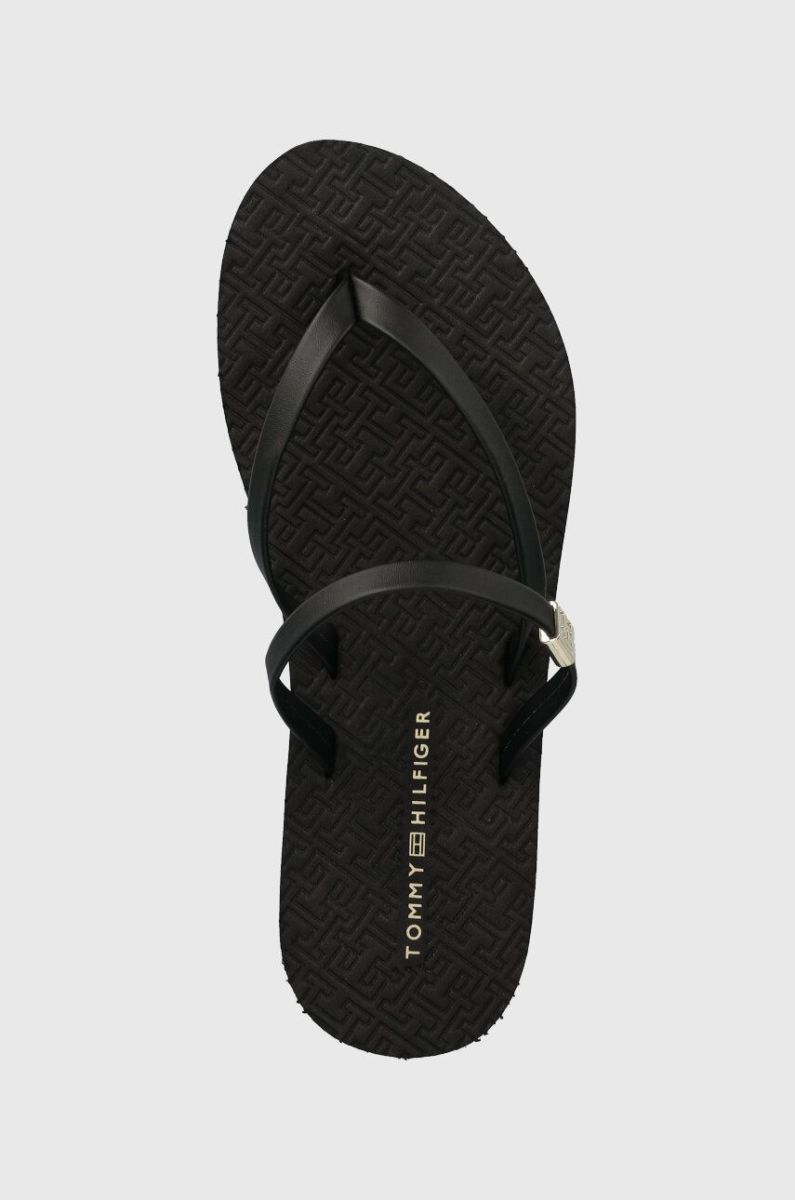 В'єтнамки Tommy Hilfiger TH MONOGRAM STRAP SANDAL жіночі колір чорний на плоскому ходу FW0FW07146