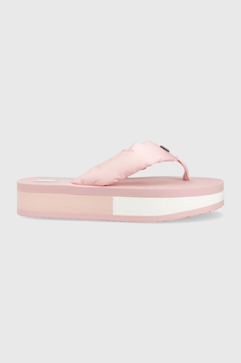 В'єтнамки Tommy Jeans WEBBING MID BEACH SNDL NW STRP жіночі колір рожевий на платформі EN0EN02114
