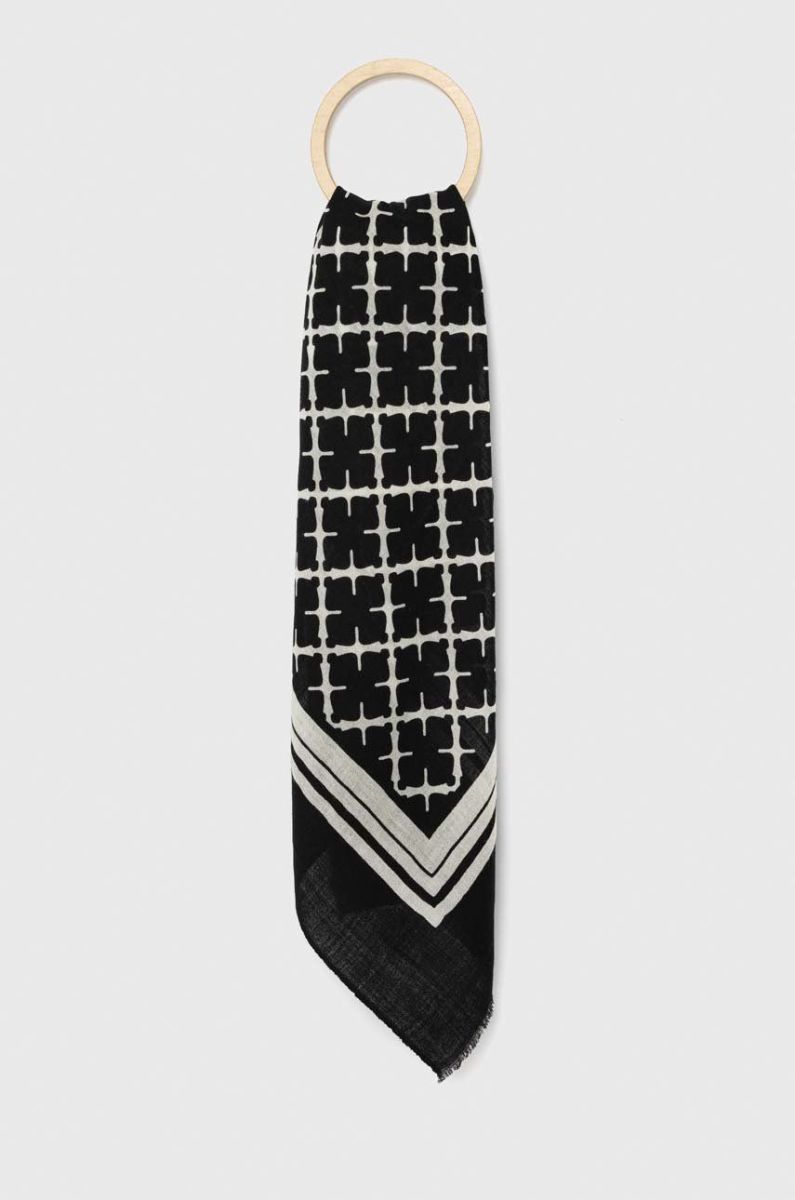 Вовняна хустка By Malene Birger колір чорний візерунок Один розмір