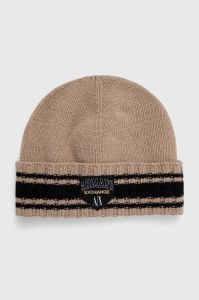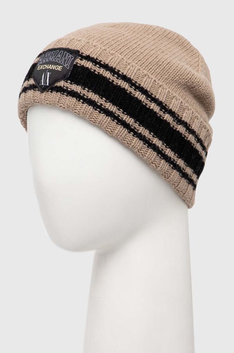 Вовняна шапка Armani Exchange колір бежевий з тонкого трикотажу вовна