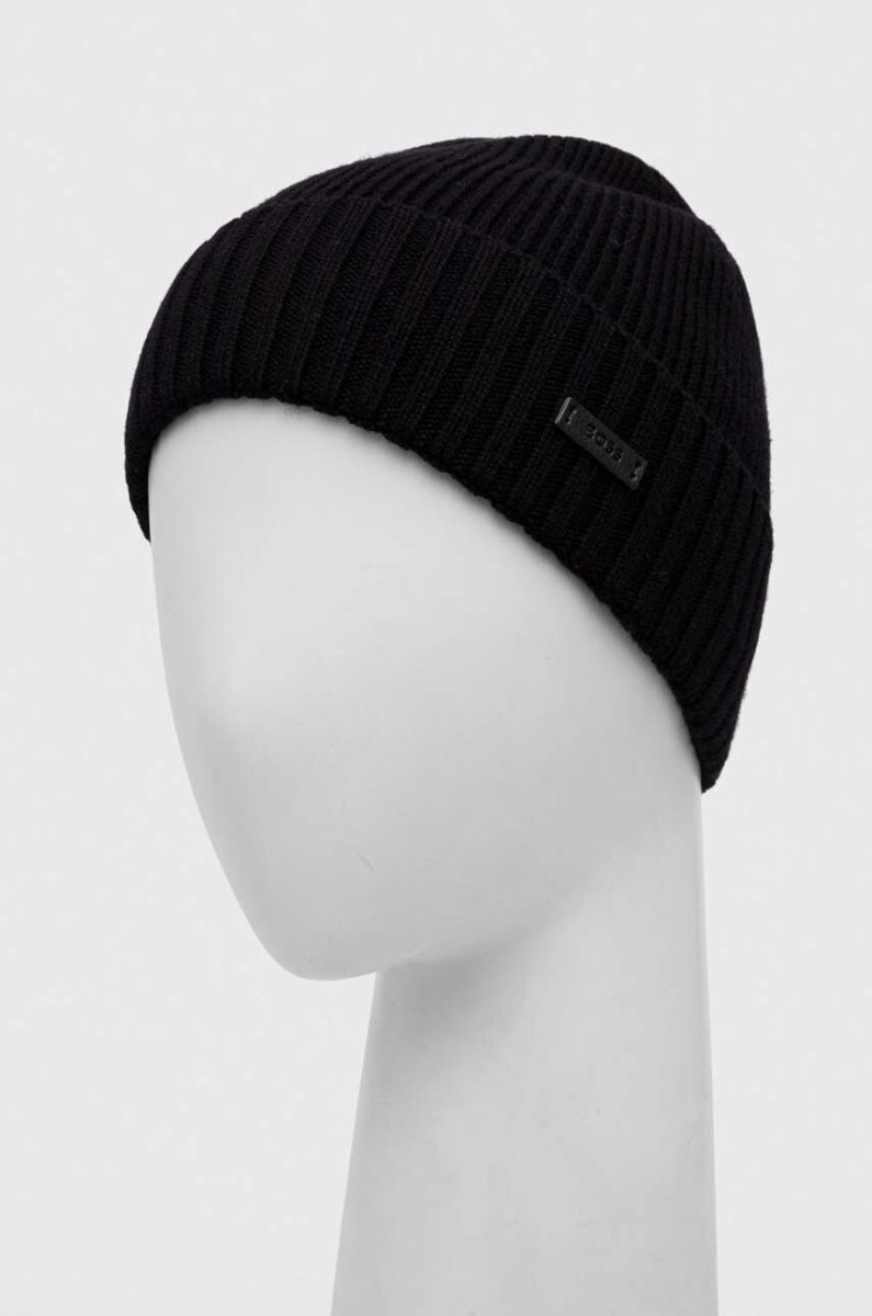 Вовняна шапка BOSS колір чорний вовна (3354015) Один розмір