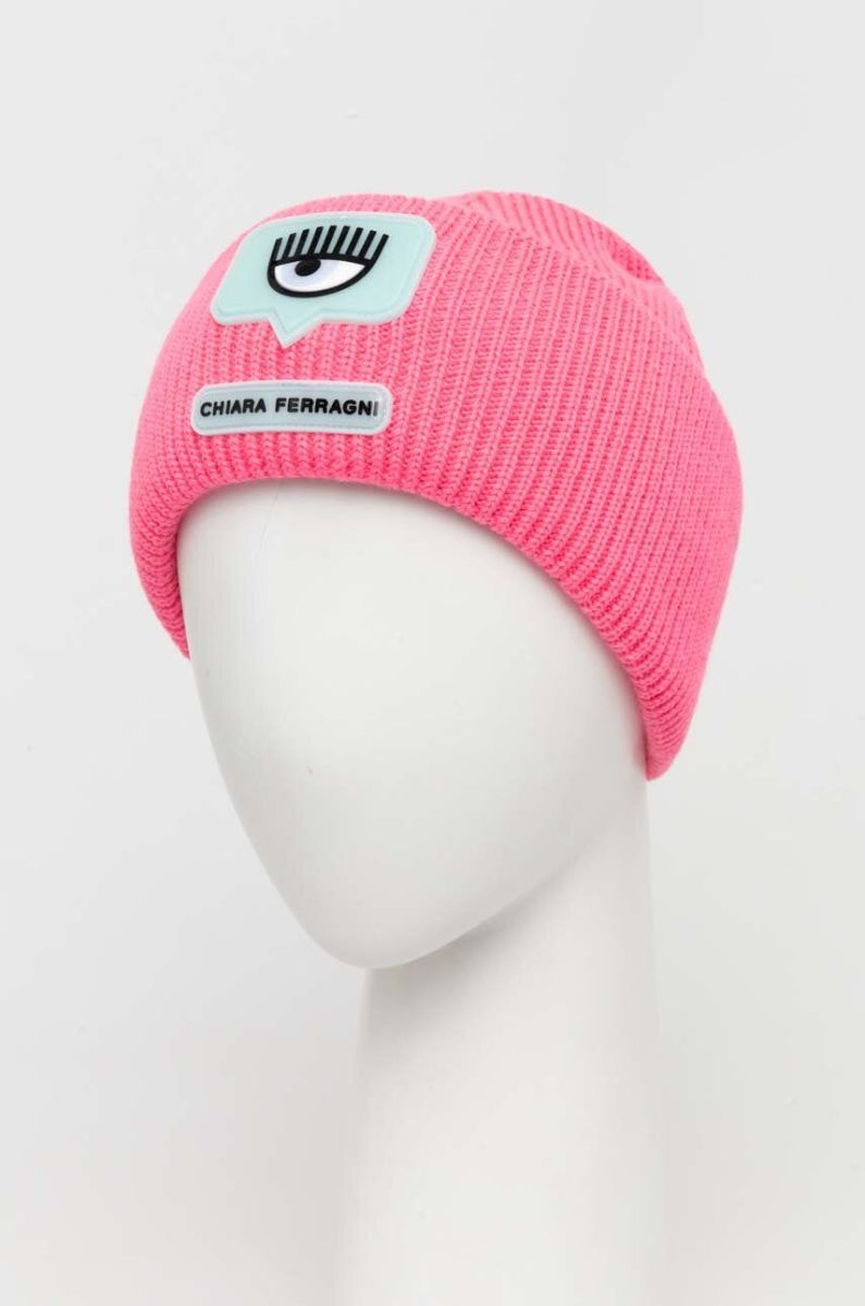 Вовняна шапка Chiara Ferragni колір рожевий вовна (3394011) Один розмір