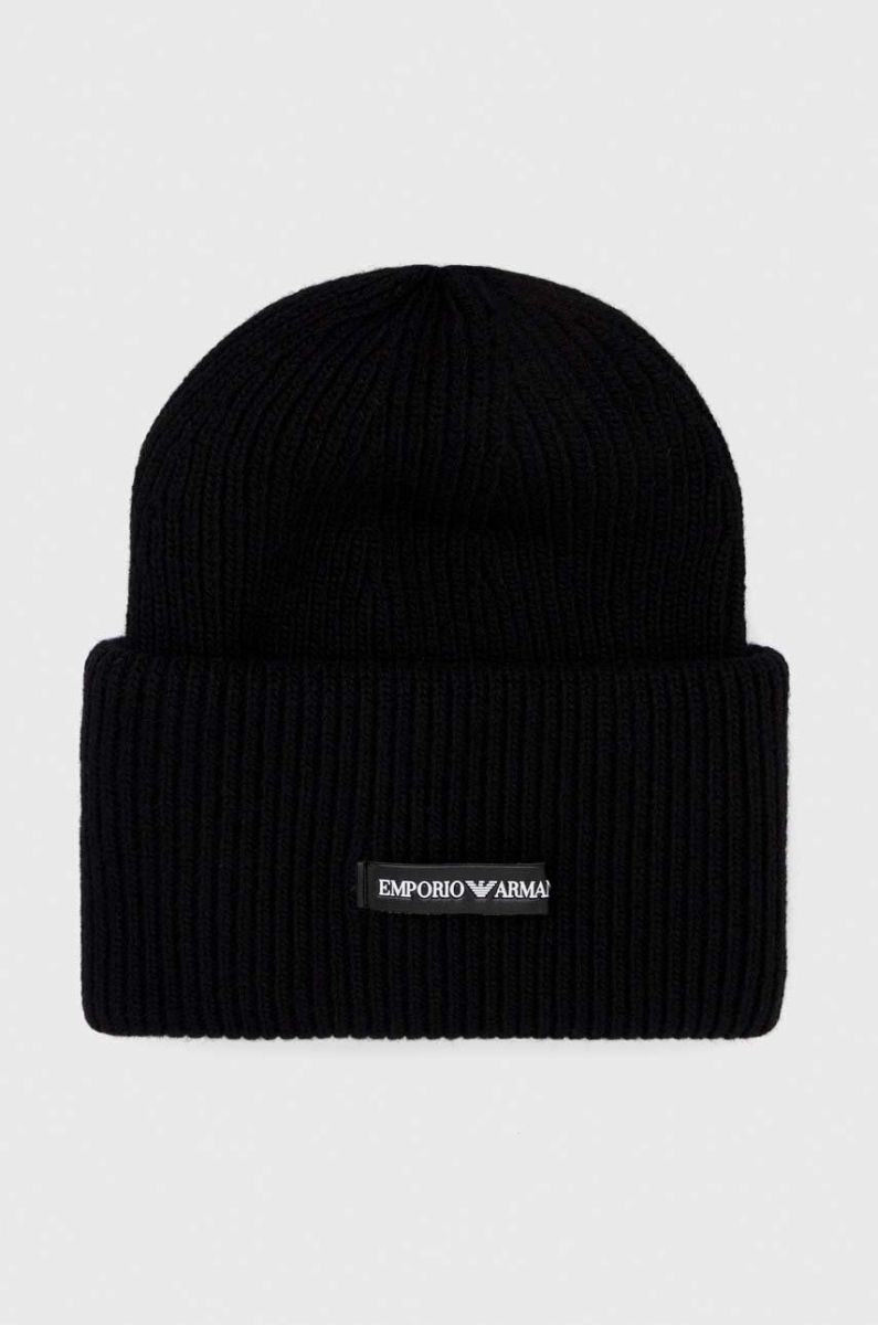 Вовняна шапка Emporio Armani колір чорний з товстого трикотажу вовна