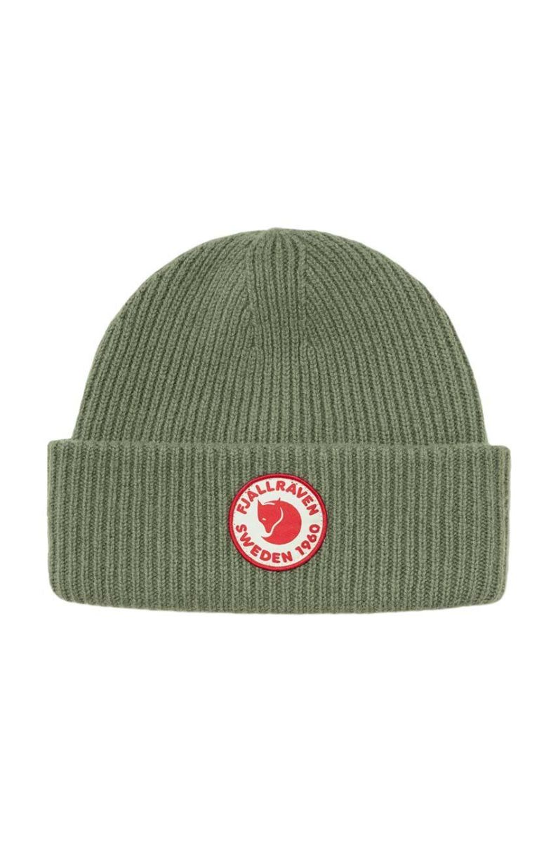 Вовняна шапка Fjallraven 1968 Logo колір зелений з товстого трикотажу вовна Один розмір