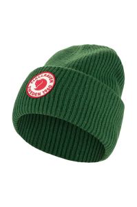 Вовняна шапка Fjallraven 1969 Logo колір зелений з товстого трикотажу вовна Один розмір