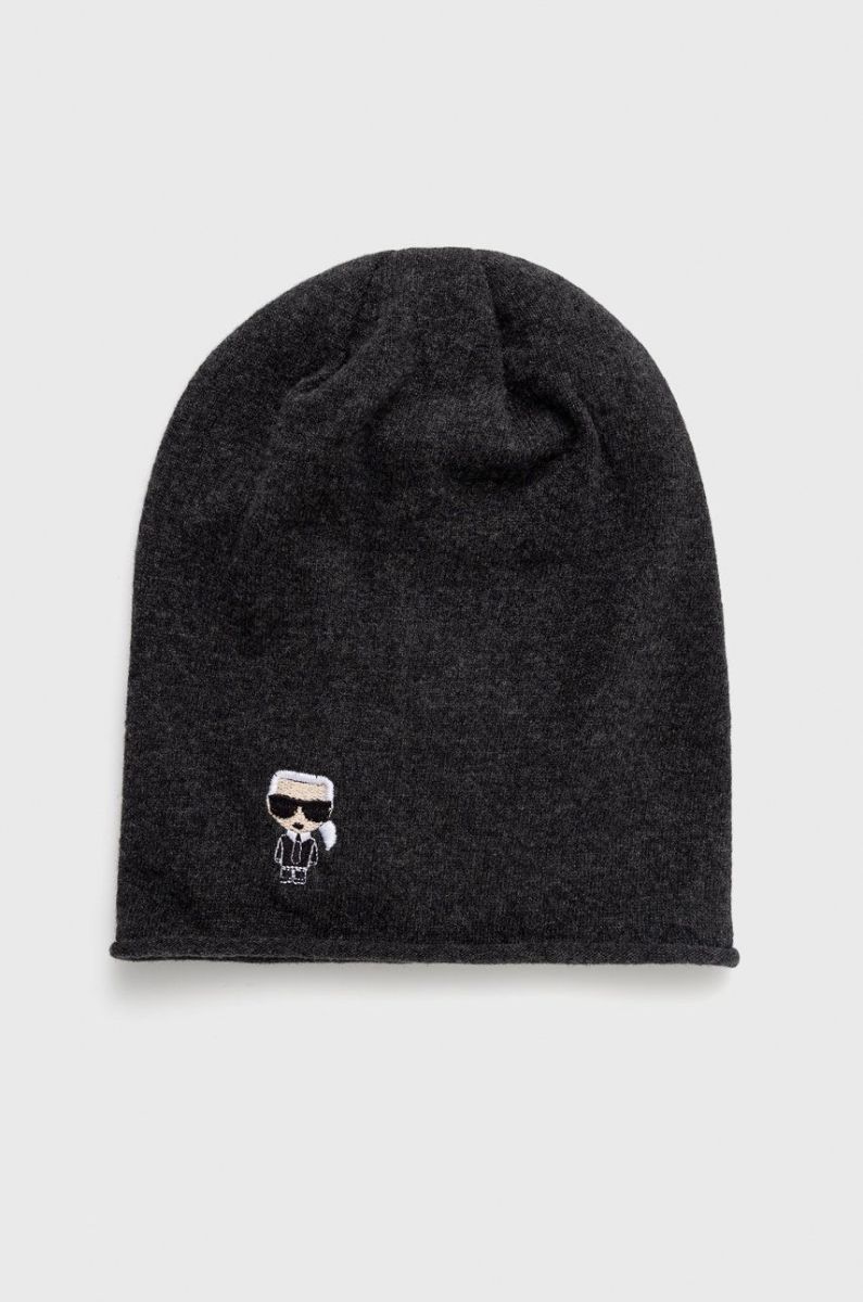 Вовняна шапка Karl Lagerfeld колір сірий з тонкого трикотажу вовна (2720240)