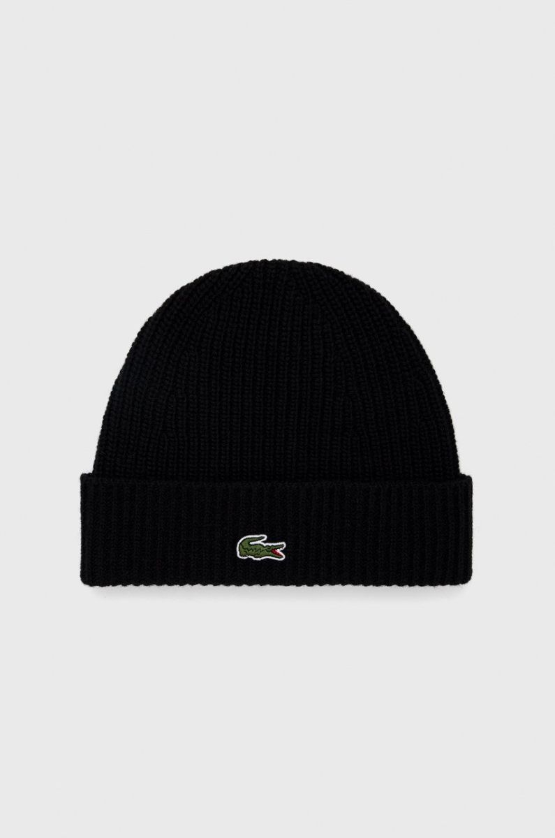 Вовняна шапка Lacoste колір чорний з тонкого трикотажу вовна