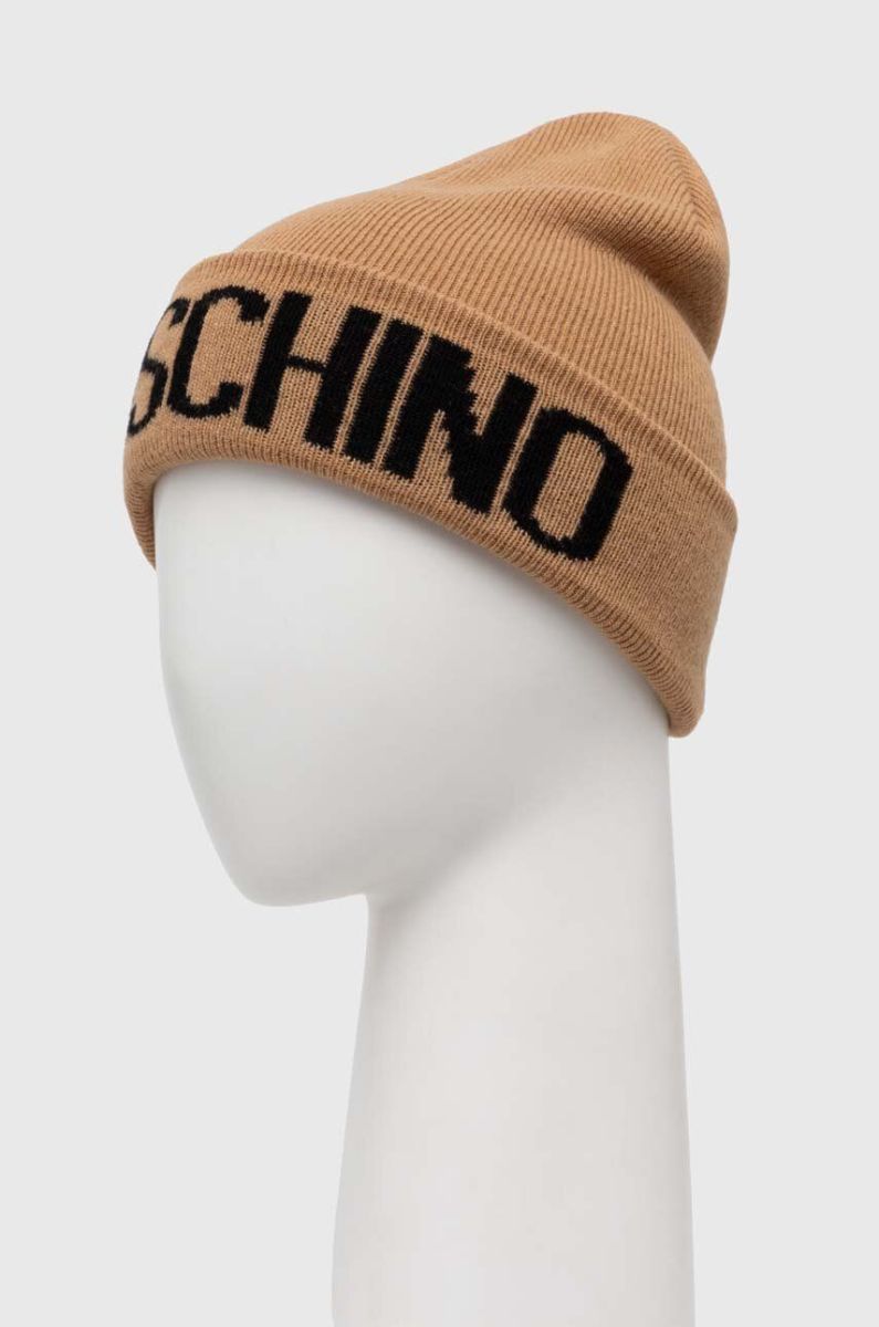 Вовняна шапка Moschino колір бежевий