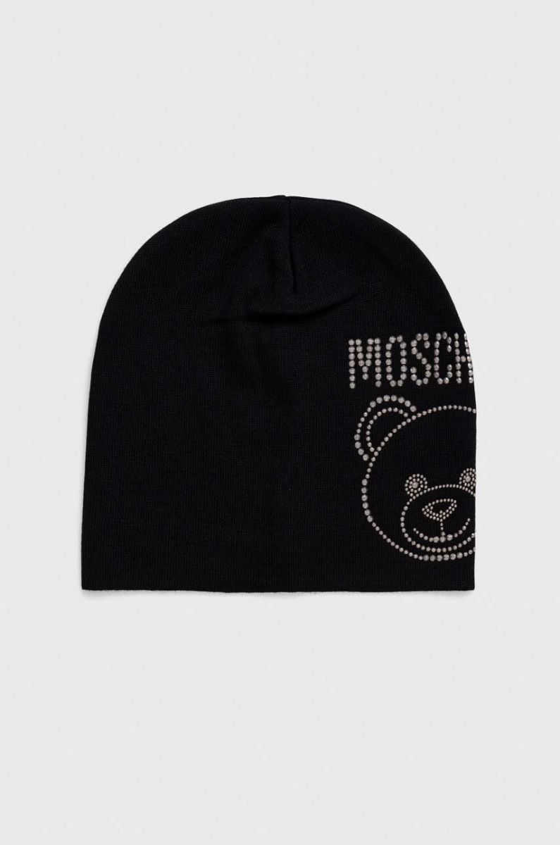 Вовняна шапка Moschino колір чорний з тонкого трикотажу вовна (3403583)
