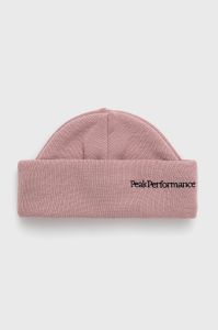 Вовняна шапка Peak Performance колір рожевий з тонкого трикотажу вовна