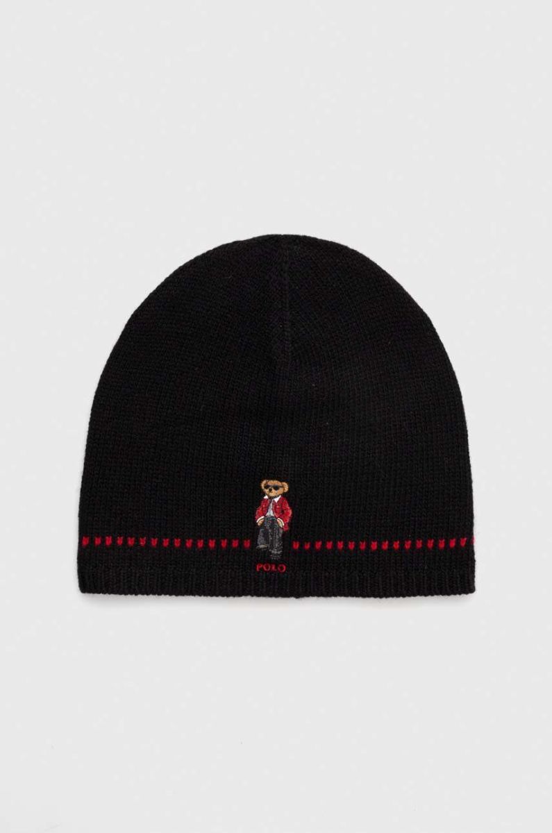 Вовняна шапка Polo Ralph Lauren колір чорний з тонкого трикотажу вовна (3630724)