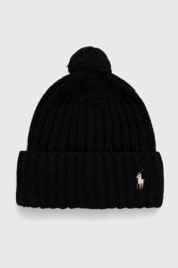 Вовняна шапка Polo Ralph Lauren колір чорний з товстого трикотажу вовна