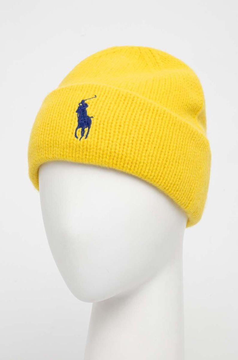 Вовняна шапка Polo Ralph Lauren колір жовтий з товстого трикотажу вовна