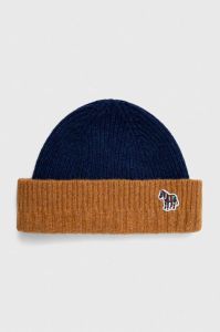 Вовняна шапка PS Paul Smith колір синій з товстого трикотажу вовна Один розмір