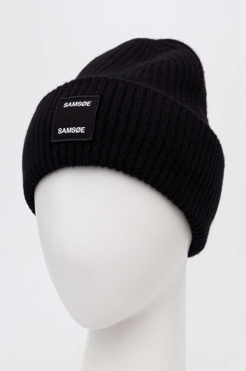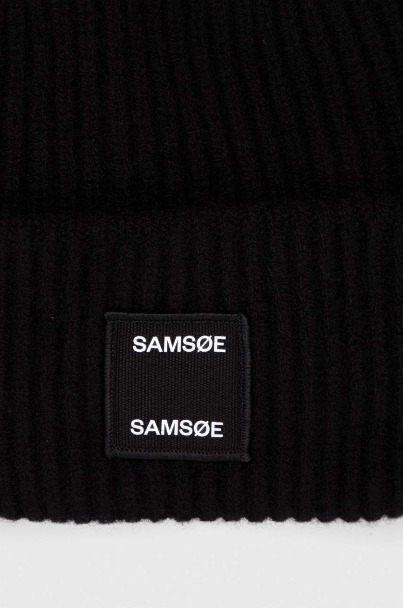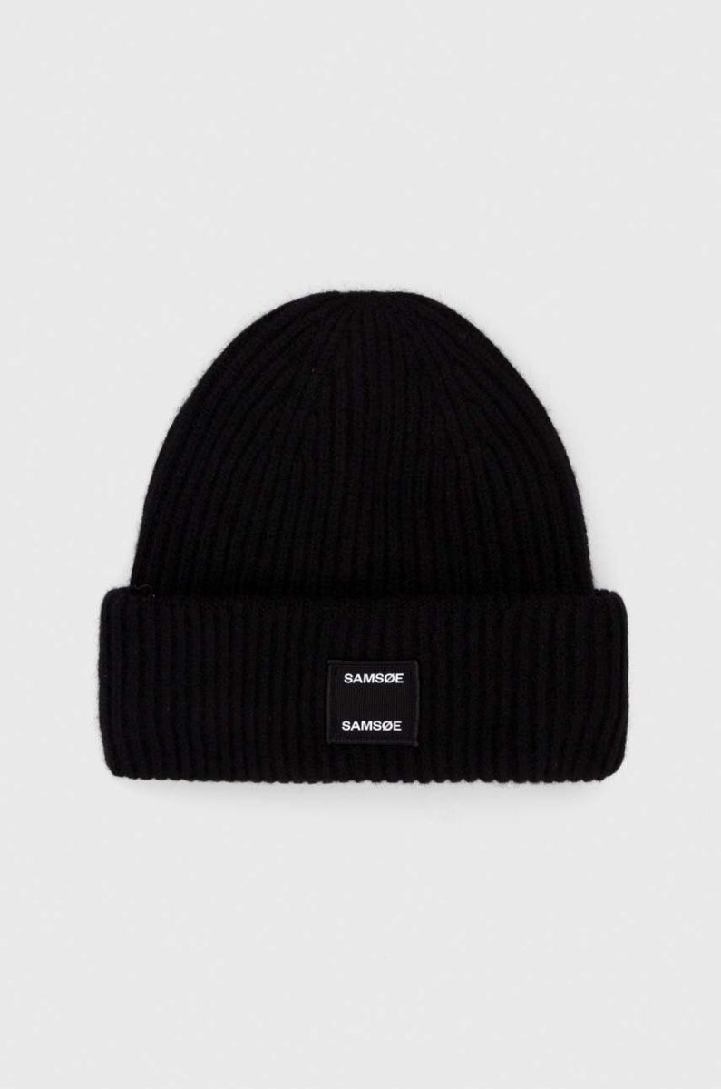Вовняна шапка Samsoe Samsoe колір чорний з товстого трикотажу вовна (3511638)