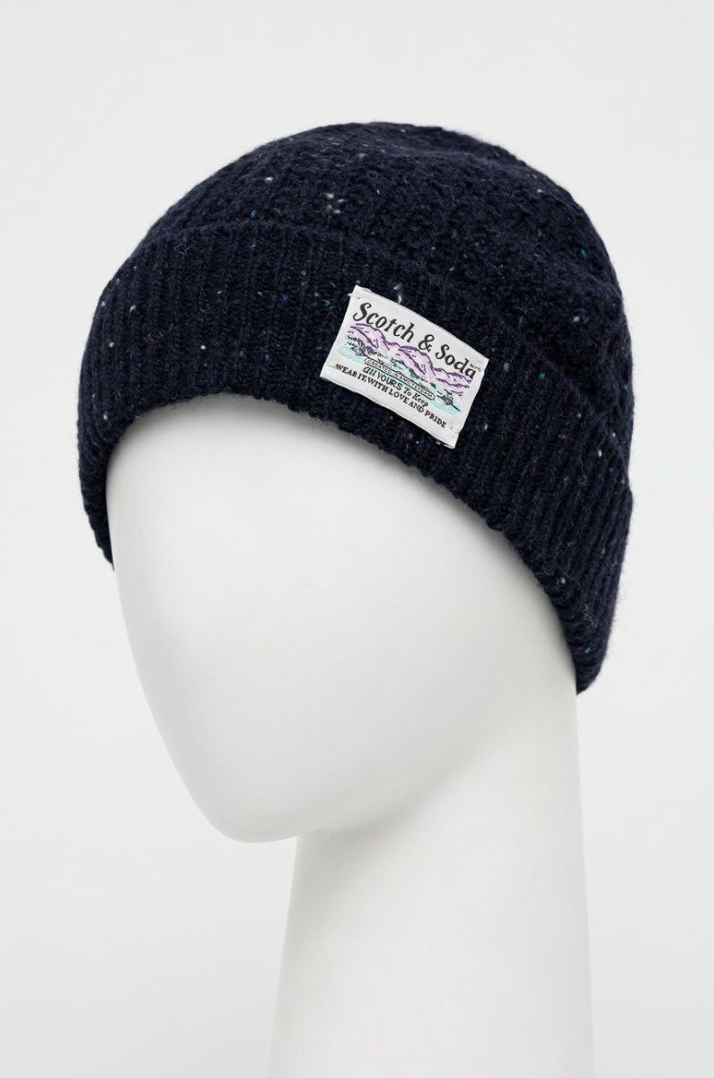 Вовняна шапка Scotch & Soda колір синій з тонкого трикотажу вовна Один розмір