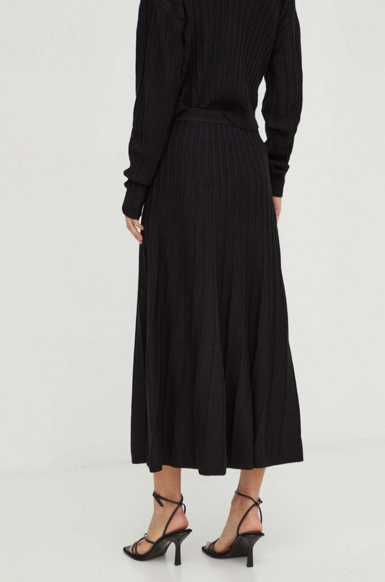 Вовняна спідниця BA&SH колір чорний midi розкльошена