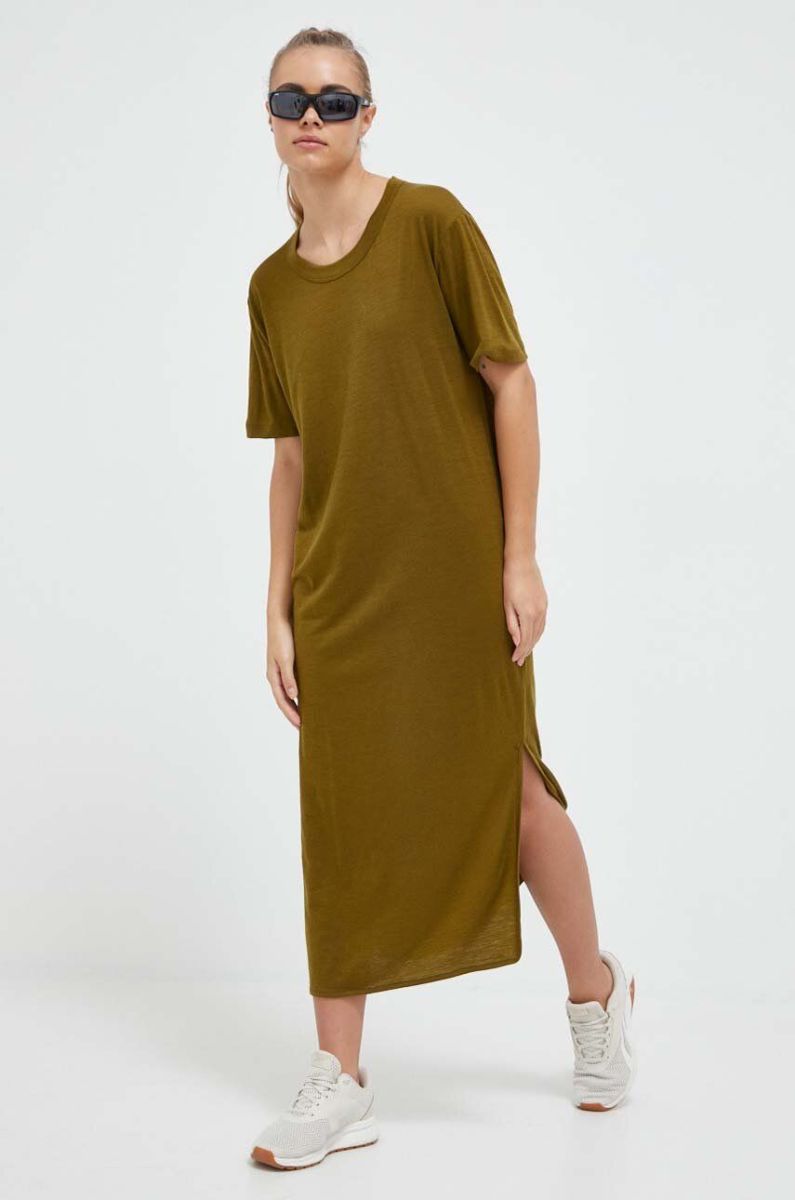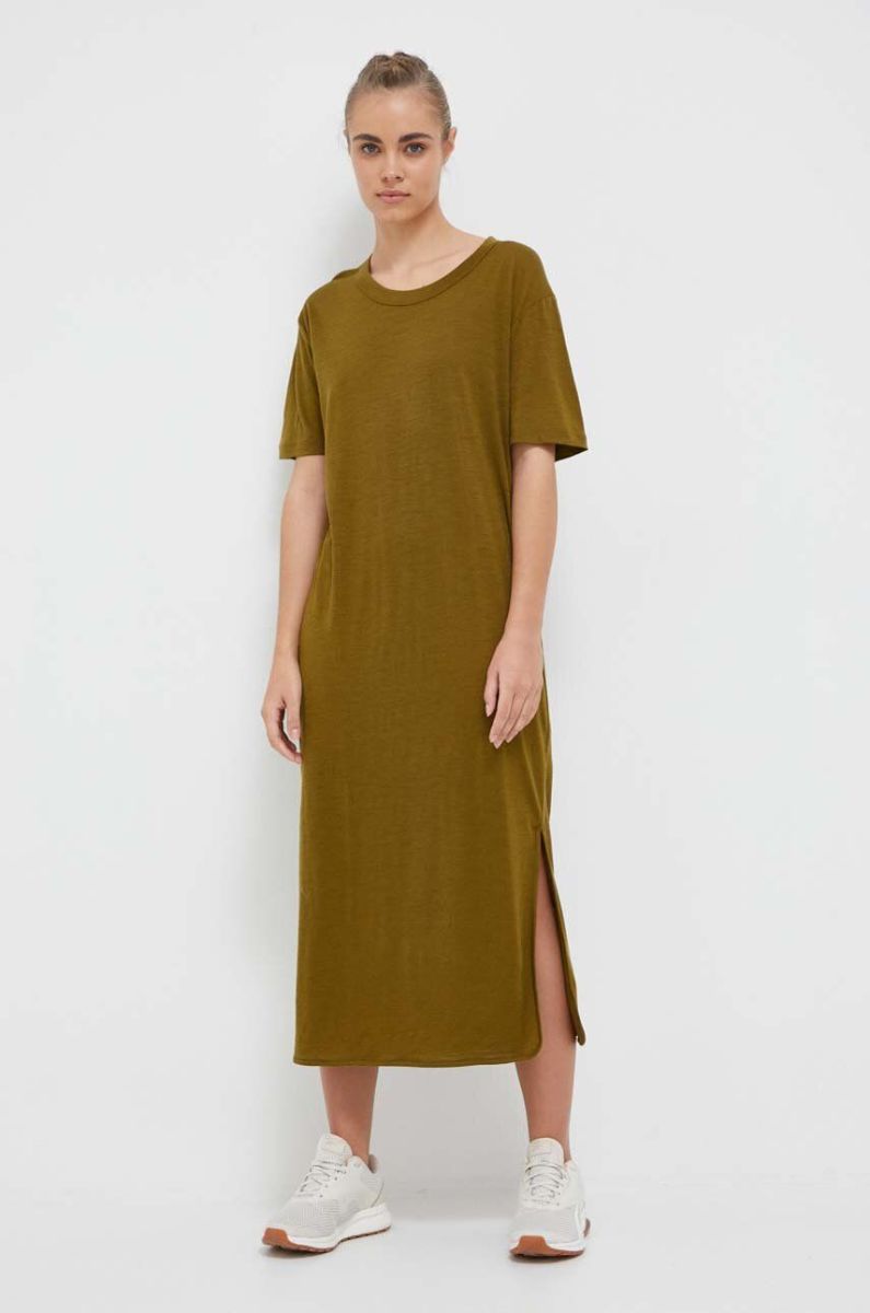 Вовняна сукня Icebreaker колір зелений midi пряма