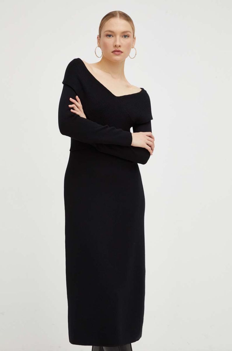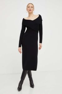 Вовняна сукня Luisa Spagnoli колір чорний midi облягаюча