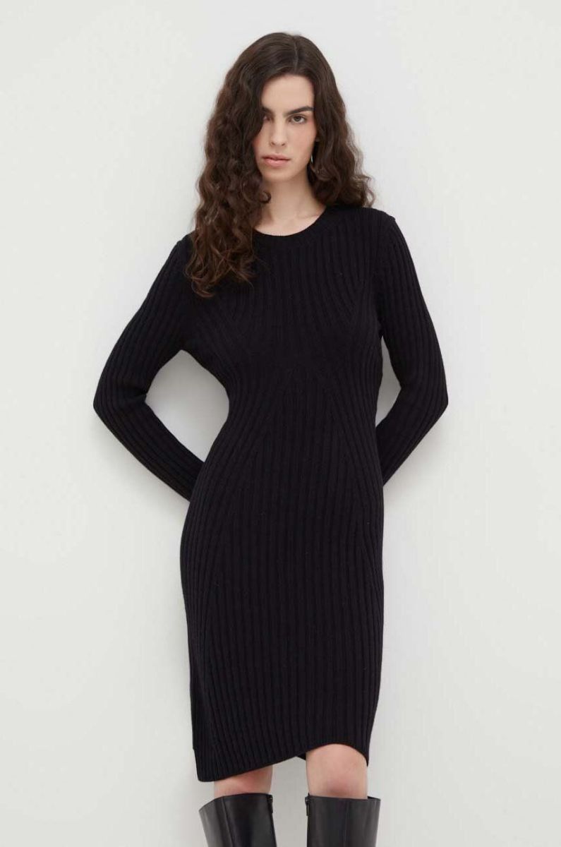 Вовняна сукня Marc O'Polo колір чорний mini розкльошена