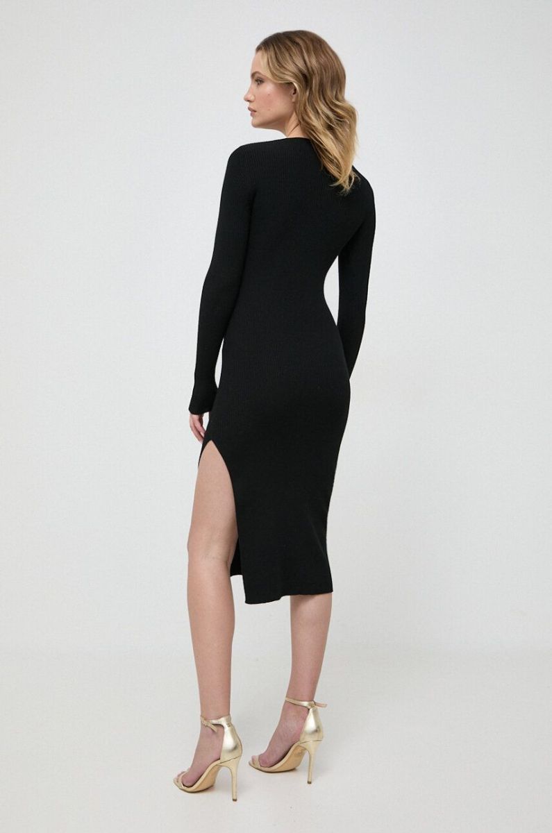 Вовняна сукня Pinko колір чорний midi облягаюча (3555259)