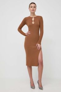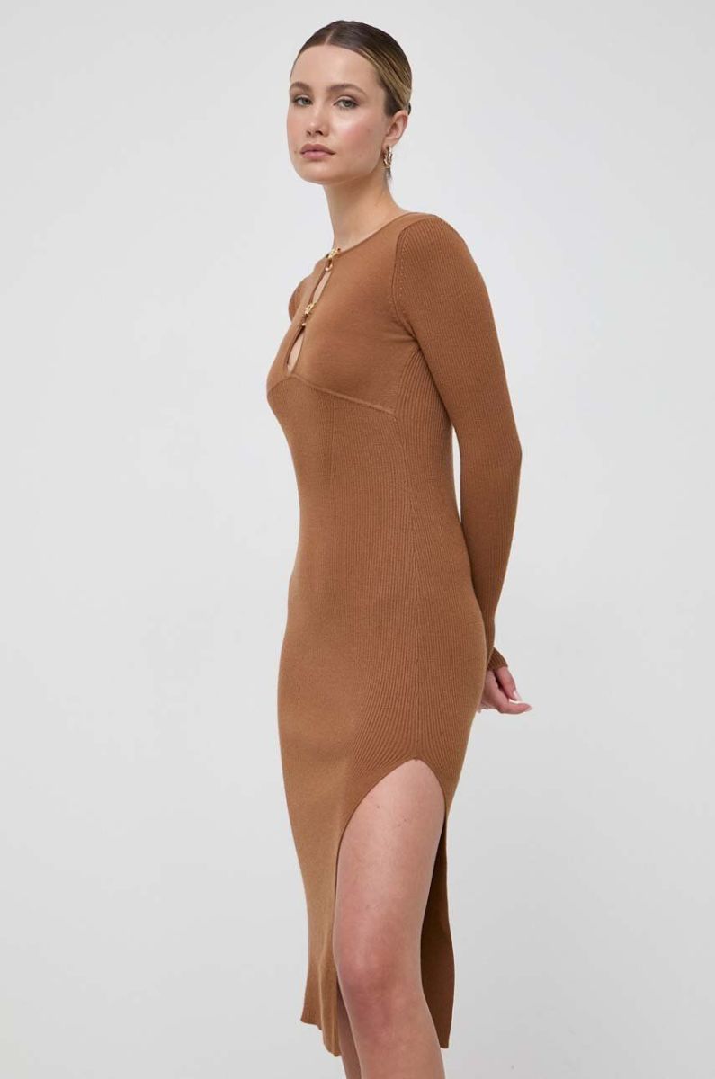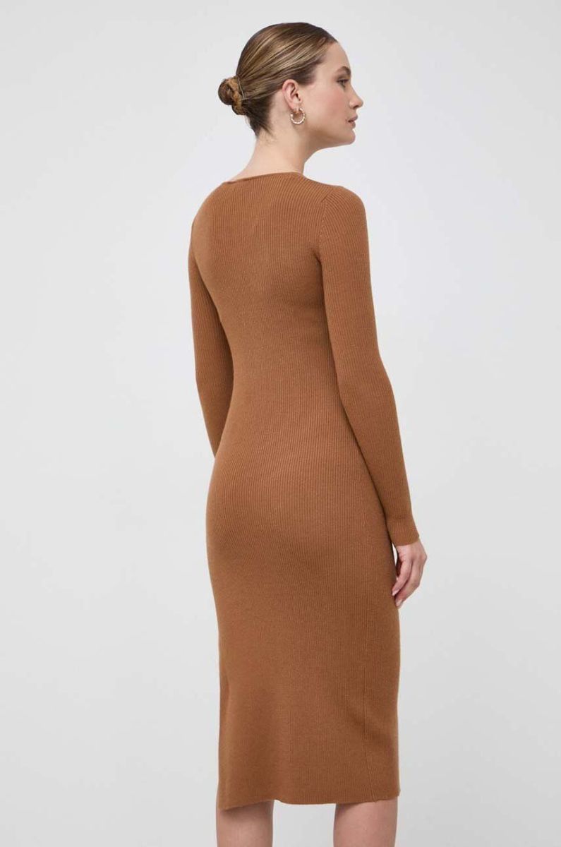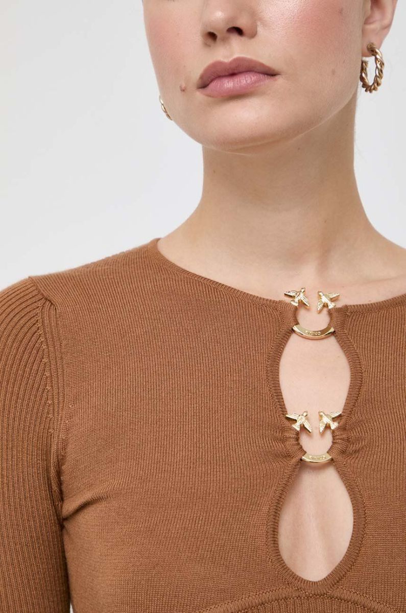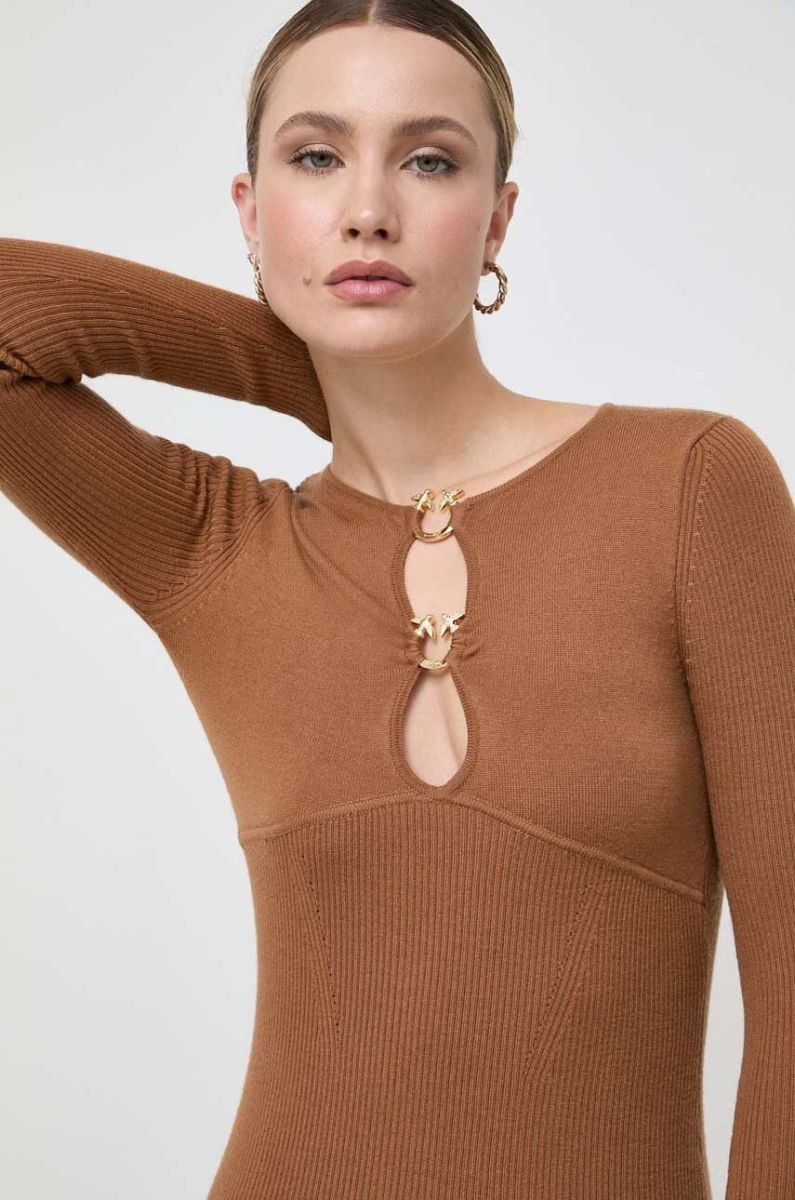 Вовняна сукня Pinko колір коричневий midi облягаюча