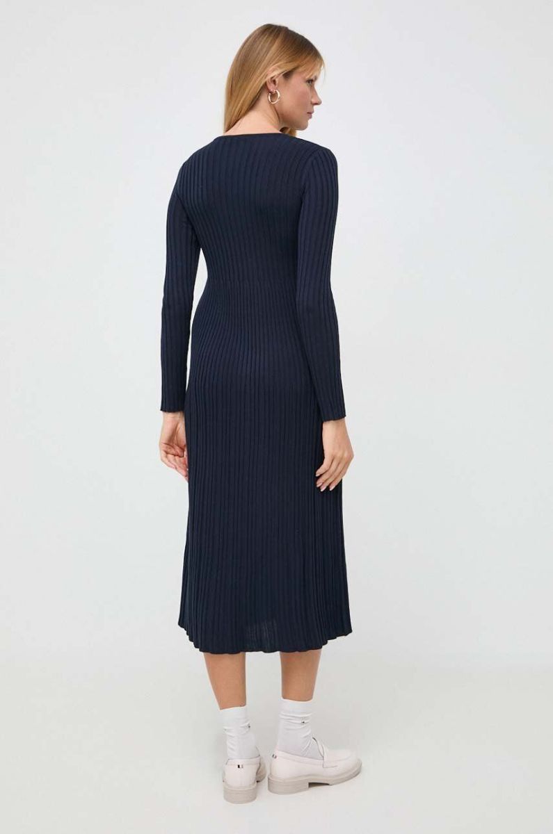 Вовняна сукня Weekend Max Mara колір синій midi облягаюча
